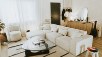 September 19, 2025 - A stylish and polished space with black-trimmed beige furniture, gold detailing, and classic striped throw pillows. A black and white gallery wall adds a preppy, designer-inspired touch. A stunning living room with layered beige tones, black architectural details, and a soft textured area rug. Black-framed mirrors and floor-length curtains enhance the luxurious feel. A chic and modern setting with a plush beige sectional, matte black coffee tables, and clean-lined decor.