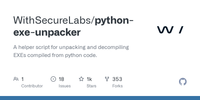 GitHub - WithSecureLabs/python-exe-unpacker: A helper script for unpacking and decompiling EXEs compiled from python code. · GitHub