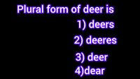 Form the plural form of the noun: deer(a) deers(b) dears(c) deeres(d) deer