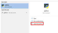 - OK on all boxes, close any CMD windows open, and open new one. Python command should now reference the correct location.