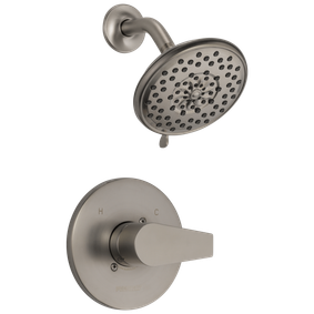 This Porter Single-Handle 3-Spray Shower Faucet in Brushed Nickel adds stylish functionality to the bath. While other products may gather unsightly mineral build-up over time, Delta soft rubber Touch-Clean spray holes allow any mineral residue to simply be wiped away for an instantly refreshed look with no need for soaking or the aid of chemical cleaners. Delta pressure-balance valves use Monitor Technology to protect you and your family from sudden temperature changes. For a look that's easily paired anywhere, the warm, muted shine of Brushed Nickel can't be beat. With a subtle touch, Brushed
