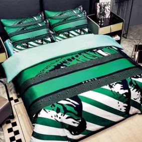 Luxury bedding sets featuring iconic brand motifs often include patterns like monograms, fleur-de-lis, and geometric shapes. Styles range from minimalist designs with subtle logos to bold, all-over prints in neutral or rich color palettes, suited for modern and classic bedroom decor themes that emphasize elegance and brand heritage.