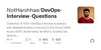 GitHub - NotHarshhaa/DevOps-Interview-Questions: Collection of 1100+ DevOps interview questions with detailed answers covering CI/CD, Cloud (AWS, Azure, GCP), Kubernetes, Terraform, Ansible, Git, Jenkins, Docker, Monitoring, and more. Perfect for beginners and experienced professionals preparing for DevOps roles. Stay ahead in your interviews with real-world scenarios and best practices! 🌟