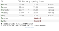 DHL Burnaby hours (2019 update)