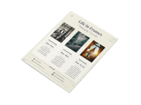 Design stunning price lists personalized for your brand. Customize with your product offering and rates. Perfect for printing and sharing online! Get digital display price lists for your venue for an even better impression.