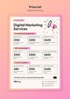 Streamline your proposals with Digital Marketing Pricing Templates, designed to outline services, pricing structures, and value propositions clearly.