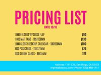It's as easy and fast as editing a Word document. In just a few clicks, you'll have your list ready to download: Click on an image in this article. Select a template. Edit the list. Save changes online. Download your list to your smartphone, tablet, or computer in JPG, PNG, or PDF format. It's done! Use your design to print or send online. Whatever your industry is, you may want to adapt your list quickly according to the season or market price increases.