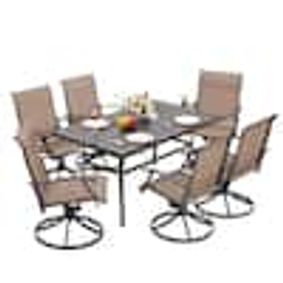 Brigantine 7-Piece Dining Set with a 40" x 70" Cast-Top Dining Table, 2 Sling Swivel Rockers, and 4 Sling Dining Chairs ... Brigantine 7-Piece Outdoor Patio Dining Set with a 40x70-In.