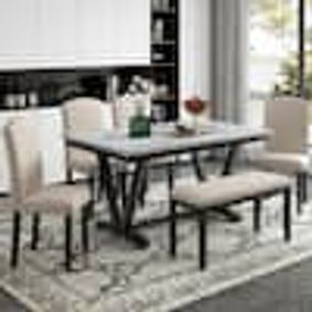 LITTLE TREE Dining Table for 4-6 People, Wooden Table, Rectangle Furniture with Heavy Duty Legs, Modern Kitchen Table for Home, Dining Room, Black · Modern Dining Room Table Set with Bench,6 Piece Marble Dining Room Table Set,White Dining Table ...