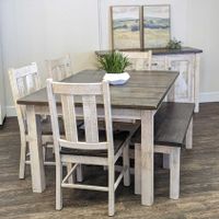 Dining bench fits well in a variety of settings in your home · Chairs and dining bench have comfortable seats made of handwoven rope · Elegant mid-century design with rustic elements creates the perfect centerpiece for entertaining guests and family View All Details · $1,199.99 · $999.99 · ASHLEY EXCLUSIVE · (58) Estimated Assembly Time: 215 Minutes View All Details · White/Light Brown · Brown · (596) Includes table and 6 upholstered chairs · Table made of veneers, wood and engineered wood ·