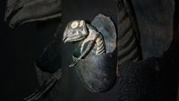 March 4, 2020 - This is a partial clutch made up of five observable eggs, with the longest 45 cm (18 inches) in length, and around 15 cm (6 inches) across, and the body of a baby theropod dinosaur on top.