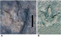 Dinosaur footprints in the Connecticut River valley were first described in the mid 19th century, and originally were thought to be these of giant birds, because of the similarity in shape of the three-toed bird and dinosaur feet (except for the size). Footprints are given a genus and species ...
