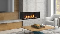 Large 3-Sided Gas Fireplace with Left and Right side glass · Large fireplace with a 60" linear burner. The clean uninterrupted view of the flame is enhanced by three sides of viewing and is zero clearance for design flexibility. It can be framed in as a corner unit as well and direct vent and power vent are available.