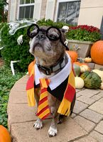 December 22, 2023 - Just put your dogs harness on first, then the costume over it to measure where to cut. You can choose to glue the scarf to the back of the robe if you don’t want it to slip off as your dog walks. That is what I did. You can make a pair of Harry Potter glasses out of a few black pipe cleaners.