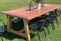 January 15, 2025 - This farmhouse style outdoor table is about 9 1/2 feet long, so it will fit 10 chairs (4 on each side, and 2 on the ends). That is enough room for plenty of friends and family to enjoy being all together at the same table! You can even fit more people if you use benches rather than chairs. ... This post was sponsored by Kreg. But all opinions, plans, photos, and ideas are my own.