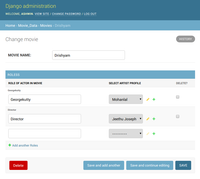 But if you need the inline style admin you should reference to the through-model. If you don't specify the custom model Django creates a simple model with 2 foreign keys to Director and Film.