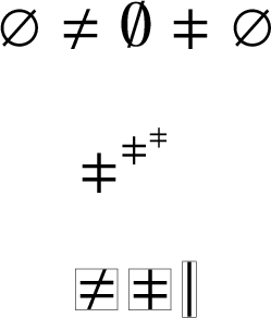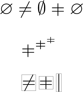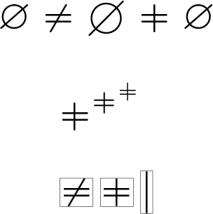 \fbox{$\neq$}\,\fbox{$\vneq$}\,\fbox{$|$}