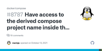 Have access to the derived compose project name inside the docker-compose.yml file.