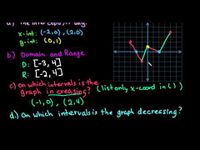 This video addresses a lot of different topics. Learn how to find the x and y intercepts. Determine on what intervals the graph is increasing, decreasing, o...