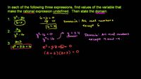 December 15, 2024 - When finding the domain of an expression, you always start with the original expression because variable terms may be factored out as part of the simplification process. In the examples that follow, the numerator and the denominator are polynomials with more than one term, but the same principles of simplifying will once again apply. Factor the numerator and denominator to simplify the rational expression.
