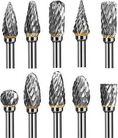 The 10pcs double cut tungsten carbide burr bits set compatible with Dremel metal grinding bits, compatible with Hardell Milwaukee DeWALT angle or straight air or electric die grinder or drill.