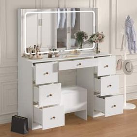 $229.99Vanity with Lighted Mirror, 9 Drawers & 6 Shelves, Features Built-in Power Outlet, 10 LED Bulbs with 3 Color Modes, Perfect Bedroom Dressing Table for Women and Girls. Mirrored Dresser for Bedroom, 6 Drawer Dresser with Wide Drawers and Metal Handles, High Gloss Large Double Dresser Chest of Drawers for Bedroom,Black