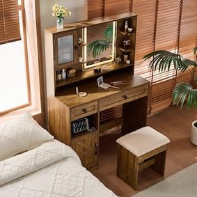 Use your dresser mirror to create a convenient getting-ready area in your bedroom for makeup application and hair styling. The mirror also helps make your room feel larger by reflecting light and creating visual depth. Ashley designs their dresser mirrors to work seamlessly with their bedroom furniture for coordinated room aesthetics. Keep the mirror surface clean and free from streaks for clear reflection during daily use. Consider organizing beauty products and accessories on the dresser surface for easy access.