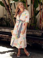 I am finding that it's hard now that styles have changed to find a knee-length dress that isn't frilly with puffy sleeves, ruffles or tiers. Because it's so hot I need cotton or linen. Also, I am pear-shaped and need a full or A-line skirt. The closest thing I've found are wrap dresses but they are rarely in a natural fabric. Bonus if it's short-sleeved because long-sleeve is too hot and sleeveless not modest enough. Thanks if you have any ideas!