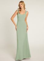 The sweeping design feels classic ... beautiful gowns a contemporary update. These elegant sage-colored dresses made from quality fabrics like satin and chiffon look beautiful as they glide down the aisle and the dancefloor....