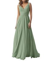Amazon.com: YUESUO Dusty Sage Wedding Bridesmaid Dresses Long V-Neck Chiffon Formal Evening Party Dress for Women Size 10 : Clothing, Shoes & Jewelry