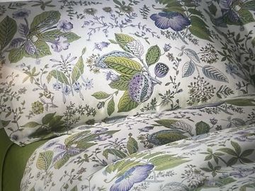 King/queen duvet cover set in soft, woven cotton fabric. Two pillowcases with envelope opening.