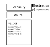 If you do plan to write your own, here's something to get you started: most dynamic array implementations work by starting off with an array of some (small) default size, then whenever you run out of space when adding a new element, double the size of the array. As you can see in the example below, it's not very difficult at all: (I've omitted safety checks for brevity)