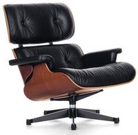 The and Ottoman, designed by Charles and Ray Eames in 1956, is an iconic piece of modern furniture manufactured and sold by Herman Miller. It was the first chair the Eameses designed for the high-end market and is composed of three curved plywood shells covered with veneer—headrest, backrest, and seat—interlocking to form a solid mass, with the shells made from seven layers of plywood in current production. The chair features a five-pointed die-cast aluminum base with a swivel mechanism, and the matching ottoman has a four-pointed base. The design was inspired by the traditional English club chair, with Charles Eames envisioning a chair with "the warm, receptive look of a well-used first baseman’s mitt".