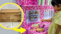 DIY Pink Play Kitchen using Cardboard at Home! - YouTube