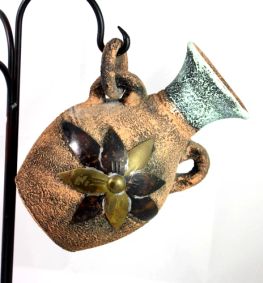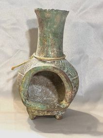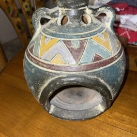 Vintage Mexican Pottery Mini Tabletop Chiminea Copper Brass 7.75” Tall Candle HoOpens in a new window or tab