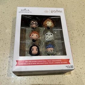 This product is a set of 5 Hallmark ... or decorating during the Christmas season. Each ornament is inspired by the Harry Potter franchise and features a wizardly theme....