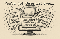There's also the question if I need to use them at all. There's a wide ocean of knowledge on YouTube (the greatest video platform in the world). FreeCodeCamp even puts their classes on YouTube so I can just quickly search without even going to their websites.The problem with YouTube, however, is that I look up something like "Python for Beginners" and there's thousands of videos. Which one do I pick??! I mean, FCC's classes are HOURS long. So there's a lot I can learn, but who says this guy or girl from this channel has more effective strategies from his/her Python class with a nicely-sized playlist cut up in different parts? Like I said; there's too many options.