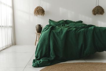 Green bedding sets that include sheets and duvet covers, such as the Windowpane Yarn-Dyed Sheet Set and Belgian Flax Linen Double Flange Duvet Cover. Green bedspread styles like the Fantastical Forest Quilt and Velvet Tufted Quilt for added texture. Special shades like olive green bedding and emerald green bedding to suit your color taste.