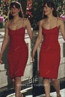 Dakota Johnson Fifty Shades Ruby Cocktail Homecoming Party Dress. Simple and sexy knee length gown with thin straps, scoop neckline, sheath silhouette.