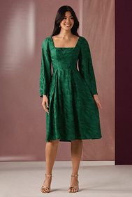 Composed of a series of luxury compositions, ensuring your picks will become a core part of your curation, expect luminescent satin, languid silk, elegant linen, flowing chiffon, and cascading organza (contrasting a number of form-fitting textiles, such as knitted jersey, structured crêpe, woven jacquard, and the four-way support of our revered Compact Stretch). The emerald green midi dress with sleeves contrasts bodycon emerald green midi cocktail dress cuts for a considered contrast, with pieces boasting various necklines and skirt styles for you to find your signature.