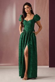 Step out in style wearing one of these stunning dresses in various shades of green. Showcasing emeralds, olives, and forest green dresses designed beautifully for outdoor event, formal gala, or party.