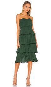 This elegant hunter green dress features a pleated bodice, a slightly pleated skirt, functional hip pockets, a smocked back, a discrete back zipper and a strapless design. 82% Polyester & 18% Nylon Unlined Hand Wash Cold Manufactured in China … ... With each sway, the Monica Dress tells its ...