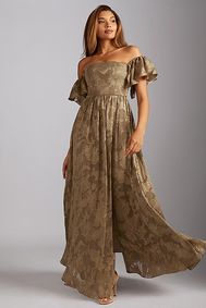 Tadashi Shoji has beautiful gowns. https://www.tadashishoji.com/ember-cape-sleeve-gown-green More on reddit.com