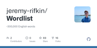 GitHub - jeremy-rifkin/Wordlist: ~300,000 English words