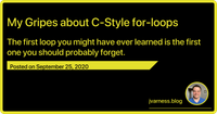 This is especially visible when the increment is some non-constant calculation, like when I was trying to implement an optimized prime checker in Kotlin, which doesn’t have C style for loops. As noted in the comments, you can also go back (have a negative increment) using C-style for loops.