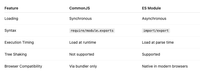 - CommonJS modules are synchronous, which isn't an issue in the case of small module execution. However it can delay execution for larger modules.
