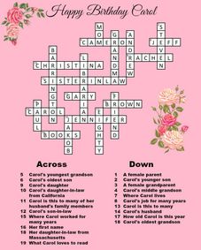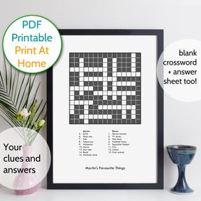 Digital Custom Crossword Puzzle with Clues Custom Style Finished and Black & White Blank Copy Weddings, Birthdays, etc.