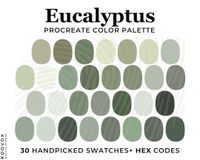 PROCREATE COLOR PALETTE - Eucalyptus Green Eucalyptus Green handpicked colors to form your cohesive color palette for Procreate, Canva, and beyond. Perfect for digital illustration, pattern design, and branding. This Procreate swatch file comes with 30 handpicked colors, ready to install.