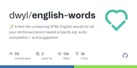 GitHub - dwyl/english-words: :memo: A text file containing 479k English words for all your dictionary/word-based projects e.g: auto-completion / autosuggestion