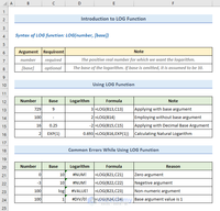 This Excel tutorial explains how to use the Excel LOG function with syntax and examples. The Microsoft Excel LOG function returns the logarithm of a number to a specified base.